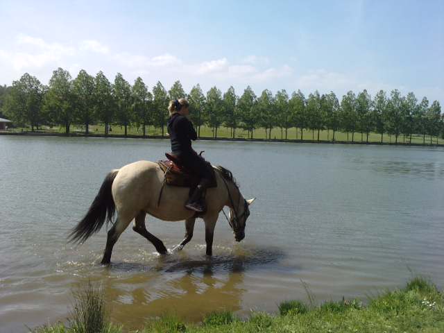 Descente vertigineuse dans la Vallée de l'Eyrieux sur St Laurent du Pape, puis baignade dans l'Eyrieux avec les chevaux.
